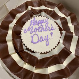 Contains dairy, serves 10-12. 3 Layers of Chocolate cake with 2 layers of Dark Chocolate Mousse covered in chocolate shavings and a dark chocolate rose. Please list the next 3 cakes you'd like within the same price category in case we are sold out of the Dark Chocolate Mousse Cake.